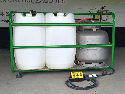 Aparelho Termonebulizador veicular totalmente automatizado; Equipado com ressonador a gás GLP (não é motor), Potência aparente: 120 CV (88 KW); Câmara de combustão: 1500 cm³; Construção: Conjunto montado em chassi de aço carbono tubular, tratado com pintura eletrostática; Ressonador (não é motor) inteiramente construído em material aço inox refratário; Tanque de calda: Em polietileno transparente - dois tanques de 50 litros; Peso vazio 45 kg; Capacidade de nebulização mínima 18 L/H x média 25 L/H x máxima 34 L/H; Sistema de partida: Eletrônica com controle remoto totalmente automatizado; Sistema de nebulização: Bomba elétrica Acionada por controle remoto, com sistema corta calda eletrônico em caso de desligamento do ressonador; Alimentação elétrica: bateria de 12 volts (utiliza a bateria do veículo); Regulagem de vazão: Através de bicos injetores intercambiáveis; Garantia de fábrica de 12 meses sobre defeitos de fabricação; Acessórios inclusos: Funil flexível com peneira resistente a combustível, manual do usuário.